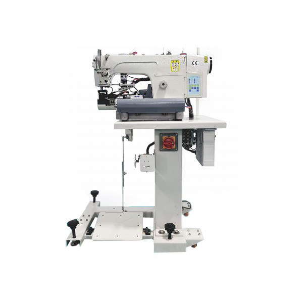 Высокоскоростная одноигольная машина челночного стежка с игольным продвижением и цилиндрической платформой, а также автоматической функцией подъема прижимной лапки и обрезкой нити пневматического типа. Предназначена для подгибки низа в три сложения при пошиве джинс, брюк, униформы и др.