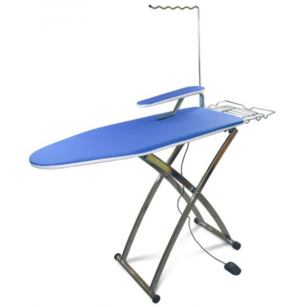 Функция наддува пригодится при глажении сложных тканей, например трикотажа. Вытяжка поможет избежать влажных пятен и зафиксировать на гладильной поверхности легкие ткани. Сама поверхность стола выполнена из оцинкованной решетки и обработана антикоррозионным составом. Отверстия в решетке так же помогают избежать образования влажных пятен.