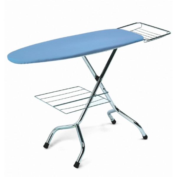 Гладильная доска хромированная, рабочая поверхность - оцинкованная решётка. Размер 120х40 см. Высокоустойчивая. Полка для парогенератора и для белья. Профессиональный чехол.