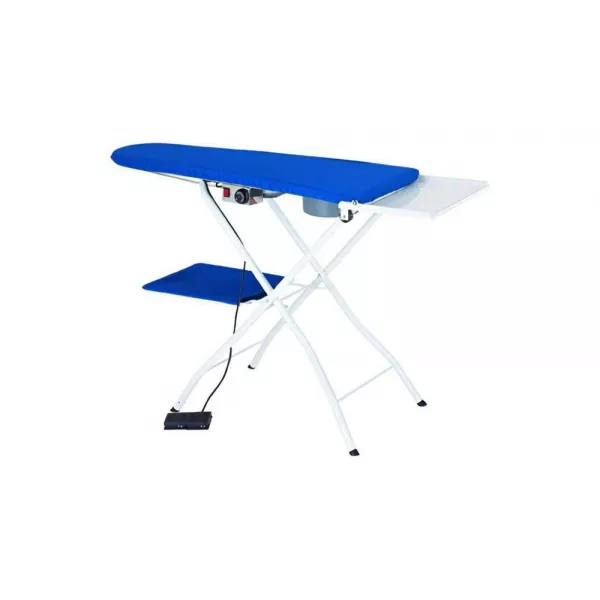 Гладильная доска с нагревом рабочей поверхности и вакуумным отсосом, 115 х 40 см. Подогрев 700 Вт, электропривод отсоса 150 Вт. Широкая подставка для парогенератора. Поворотный рукав BF075 приобретается отдельно