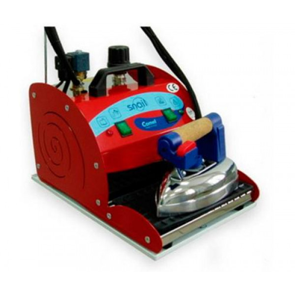 Комплект парогенератора марки Comel, в состав которого входят: промышленный утюг, парогенератор емкостью до 3 литров с аварийным клапаном и краном для слива воды, силиконовая подставка под утюг, антенна, поддерживающая провода, электроклапан для регулировки пара. Ёмкость бойлера 3 л., мощность нагревательного элемента 1500 Вт, рабочее давление 2,5, утюг на 800 Вт