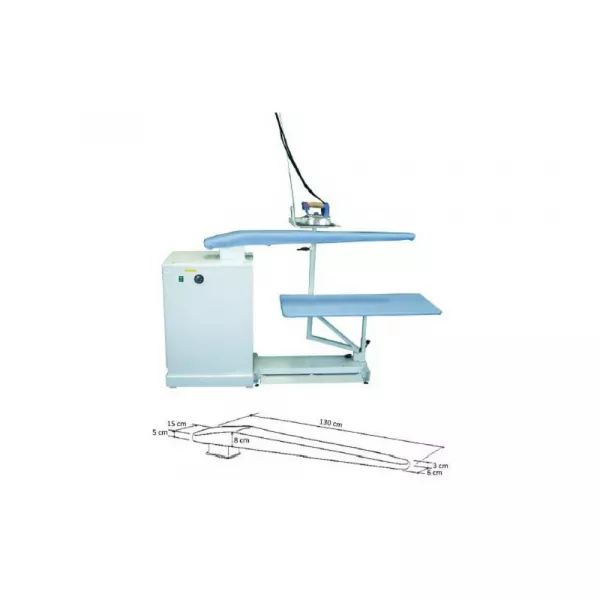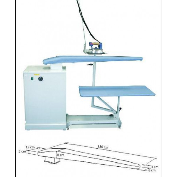 Стол для расколки швов с нагревом, вакуумом. В комплект входит: силиконовая подставка под утюг, антенна, поддерживающая провода. Электрическое подключение 220 В. Мощность нагрева стола 650 Вт. Мощность вакуума 500 Вт. Размеры рабочей поверхности 118 x 38 x 26