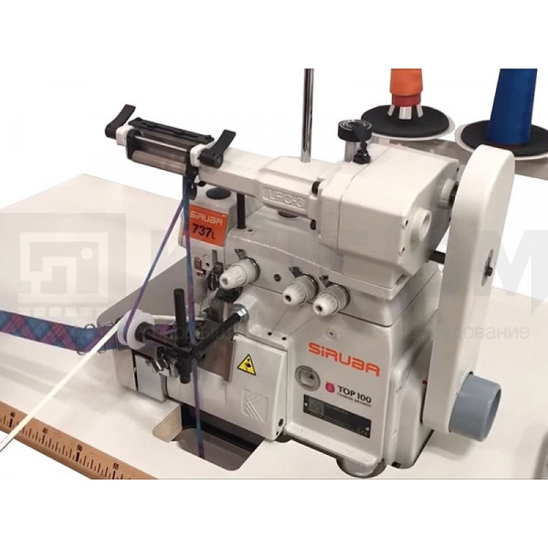 3-х ниточный оверлок с устройством для подачи эластичной тесьмы и приспособлением "спагетти" предназначен для изготовления бретелей и лямок при пошиве купальных костюмов, ночных сорочек, нижнего белья и пр. изделий, путем обметки края тесьмы и последующей загибки в форму бретели.