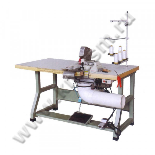 Машина предназначена для обработки краев матрасов и обметки краев материала, а также может использоваться для пришивания нетканых материалов к щиту.