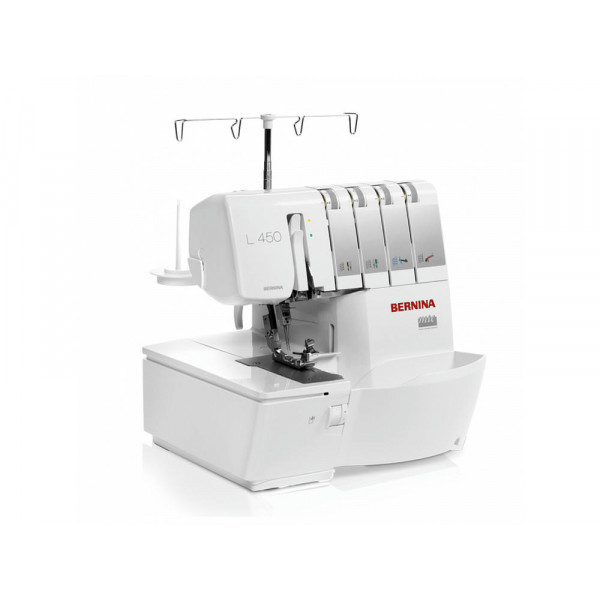 Bernina L450 обеспечивает высокий уровень комфорта. Мусоросборник используется не только для сбора обрезков во время шитья, но и для хранения педали. Часто используемые аксессуары размещаются на передней крышке машины. За подсветку рабочей зоны в этой машине отвечают 2 ярких светодиодных лампы.