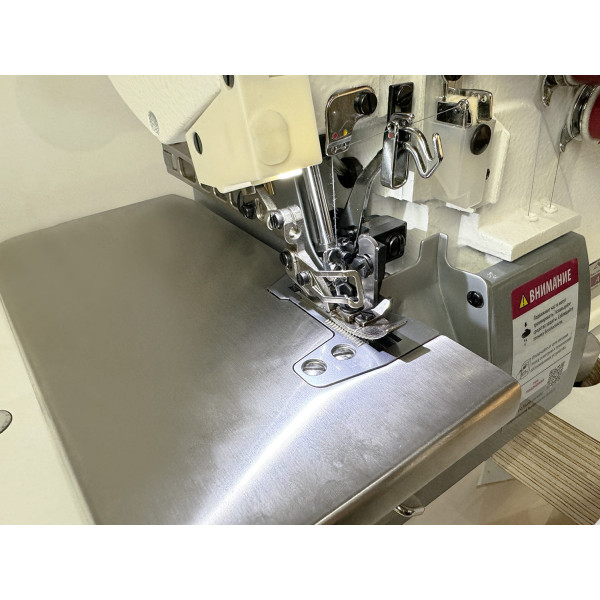 Трехниточная одноигольная стачивающе-обметочная машина со встроенным мотором, регулировкой скорости и позиционированием иглы предназначен для обметывания цепным стежком краев деталей швейных изделий из легких и средних материалов.