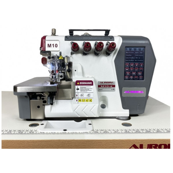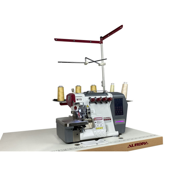 Автоматизированный высокоскоростная четырехниточная двухигольная стачивающе-обметочная машина (4-х ниточный оверлок) с автоматическим подьемом лапки и автоматический обрезчик ленты / цепочки нити за счет шагового двигателя, прямым сервоприводом, регулировкой скорости и позиционированием иглы, предназначен для обметывания цепным стежком краев деталей швейных изделий из легких и средних материалов.