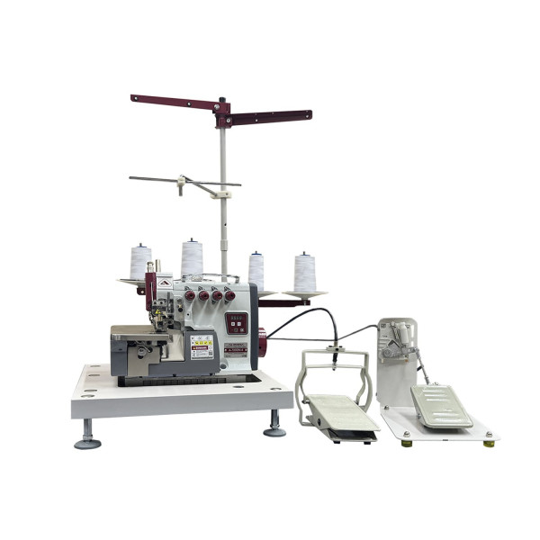 Настольный промышленный 4-х ниточный оверлок со встроенным мотором, столиком и педалью привода предназначен для обметывания краев деталей швейных изделий из хлопчатобумажных, шерстяных, шелковых, льняных, синтетических тканей и трикотажных полотен с одновременной обрезкой края.