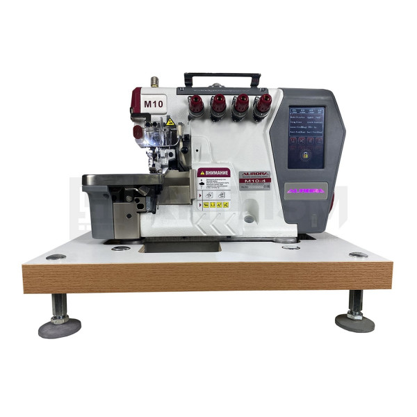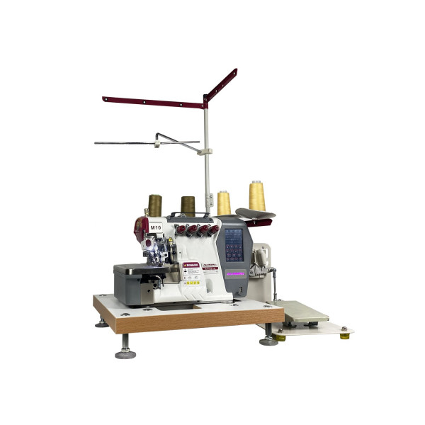 Современная портативная автоматизированная высокоскоростная четырехниточная двухигольная стачивающе-обметочная машина (4-х ниточный оверлок) с автоматическим подьемом лапки и автоматический обрезчик ленты / цепочки нити за счет шагового двигателя, прямым сервоприводом, регулировкой скорости и позиционированием иглы, предназначен для обметывания цепным стежком краев деталей швейных изделий из легких и средних материалов.