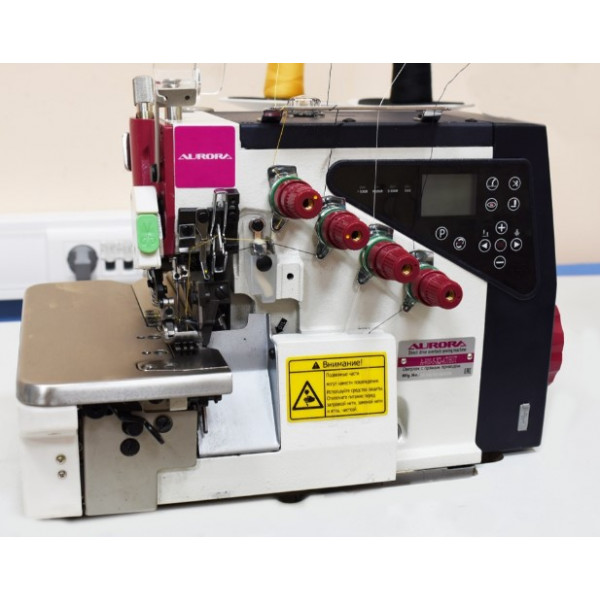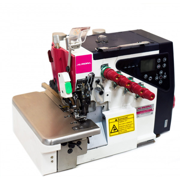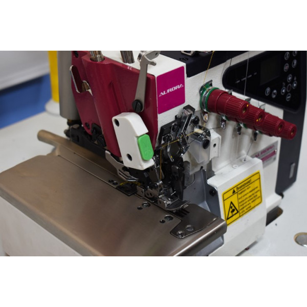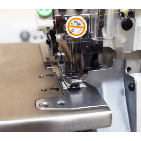 Промышленный двухигольный пятиниточный оверлок со встроенным мотором, автоматическим подъемом лапки, автоматическим началом и окончанием шитья, автоматической обрезкой нити.