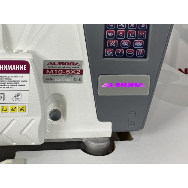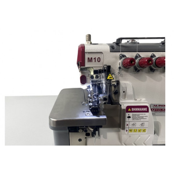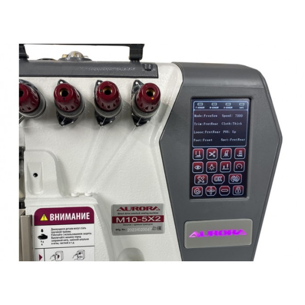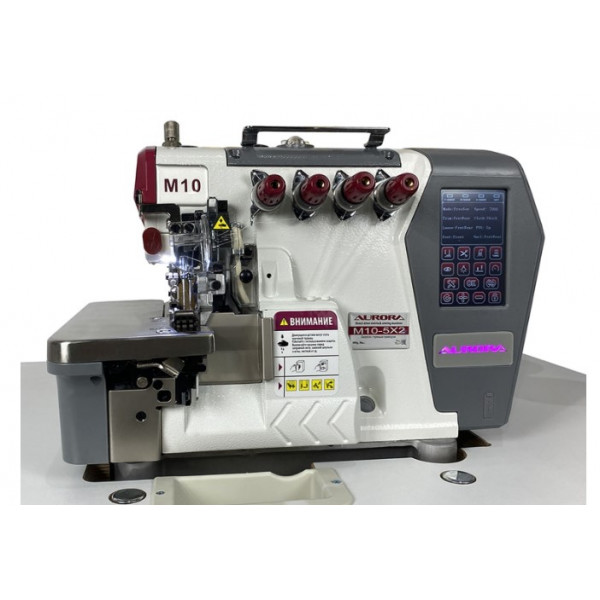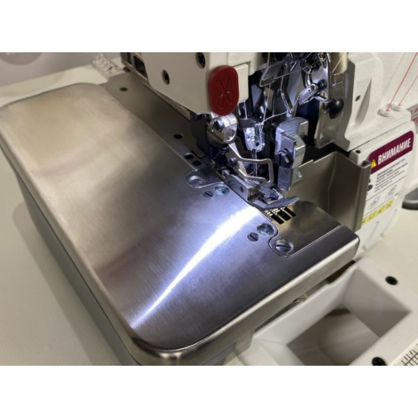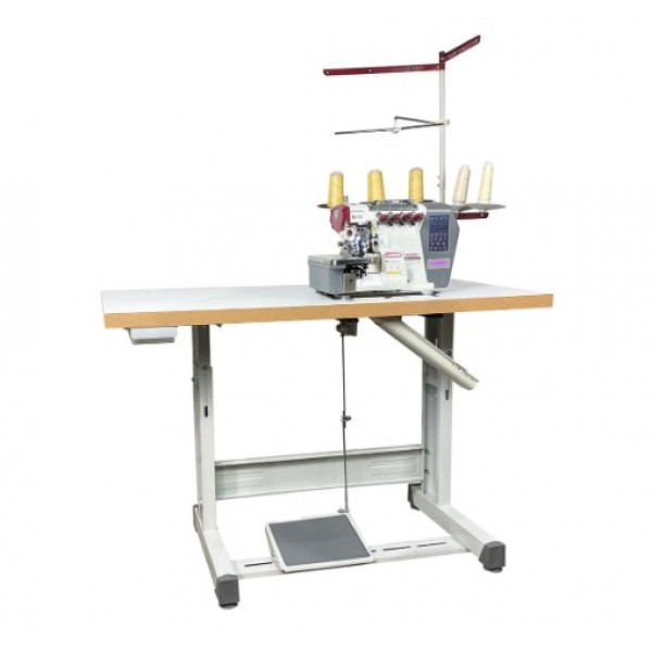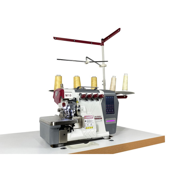 Автоматизированная высокоскоростная пятиниточная двухигольная стачивающе-обметочная машина (5-ти ниточный оверлок) с автоматическим подьемом лапки за счет шагового двигателя, прямым сервоприводом, регулировкой скорости и позиционированием иглы, предназначен для обметывания цепным стежком краев деталей швейных изделий из средних и тяжелых материалов.