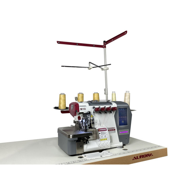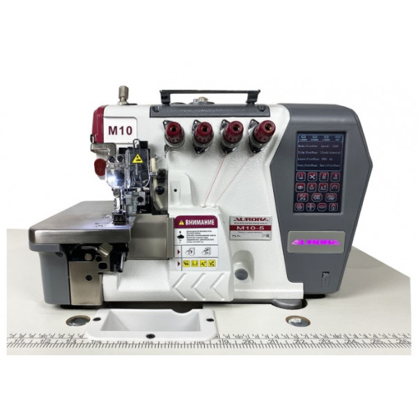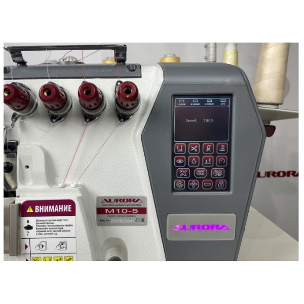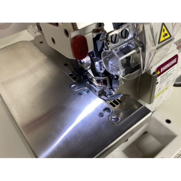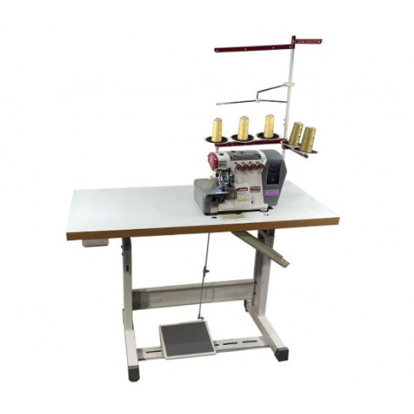 Автоматизированная высокоскоростная пятиниточная двухигольная стачивающе-обметочная машина (5-ти ниточный оверлок) с автоматическим подьемом лапки за счет шагового двигателя, прямым сервоприводом, регулировкой скорости и позиционированием иглы, предназначен для обметывания цепным стежком краев деталей швейных изделий из легких и средних материалов.