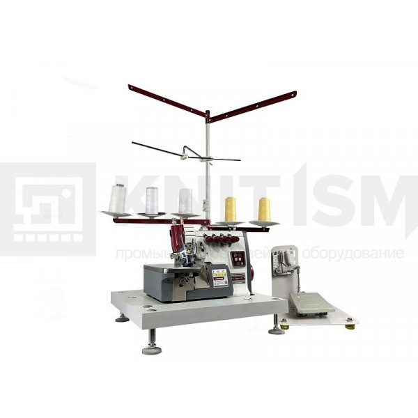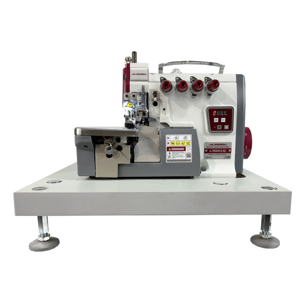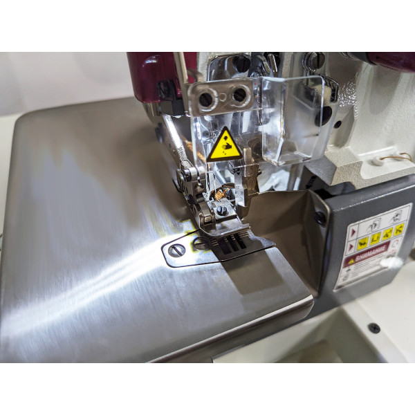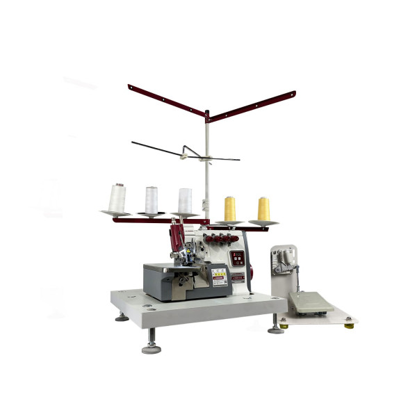 Настольная пятиниточная двухигольная стачивающе-обметочная машина со встроенным мотором, регулировкой скорости и позиционированием иглы из средних и тяжелых материалов.