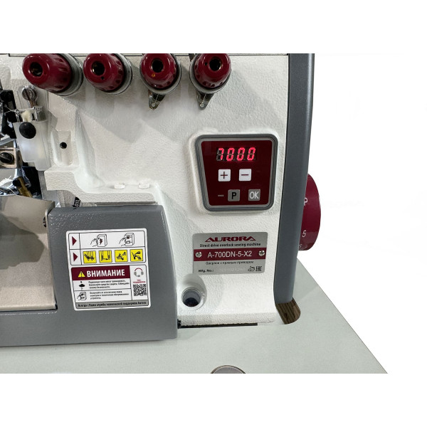 Светодиодная подсветка (LED-подсветка);Встроенный сервомотор с плавной регулировкой скорости;Позиционирование иглы;Ширина обметки: 6 мм;Ширина шва: 11 мм (5+6);Расстояние между иглами: 5 мм;Величина дифференциальной подачи: 0.7 - 2;Длина стежка: 0,5 - 4 мм;Высота подъема лапки: до 6 мм;Автоматическая смазка;Максимальная скорость шитья: до 5000 ст/мин;Тип иглы: B-27 (DCx27) №75; Светодиодная подсветка (LED-подсветка); Встроенный сервомотор с плавной регулировкой скорости;Позиционирование иглы. Основные преимущества: