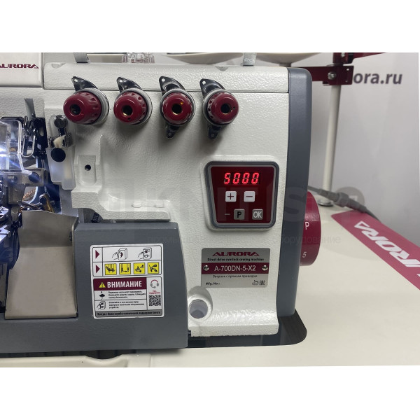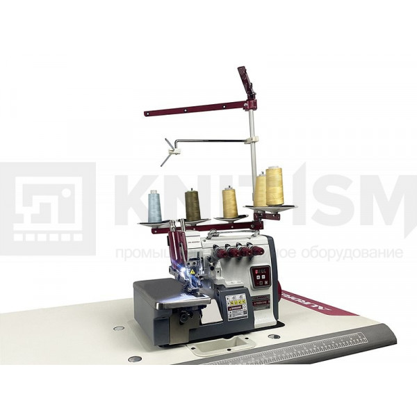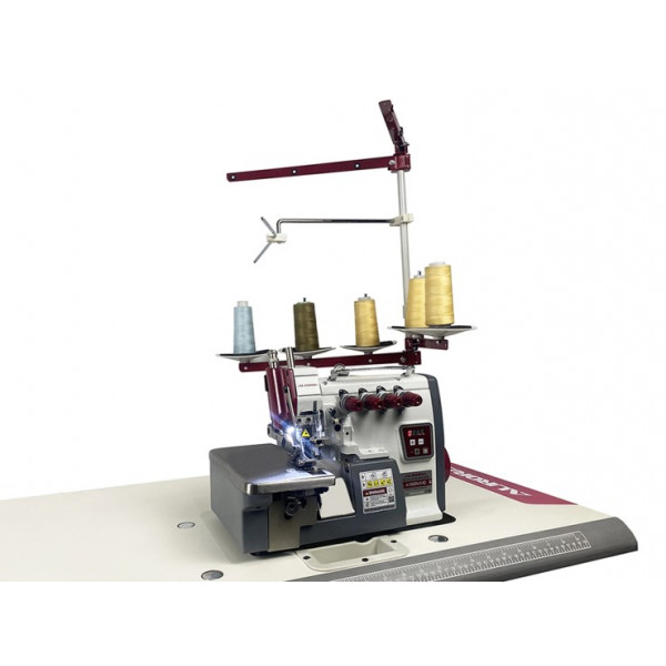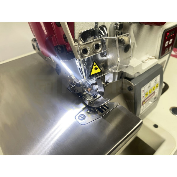 Пятиниточная двухигольная стачивающе-обметочная машина со встроенным мотором, регулировкой скорости и позиционированием иглы из средних и тяжелых материалов.