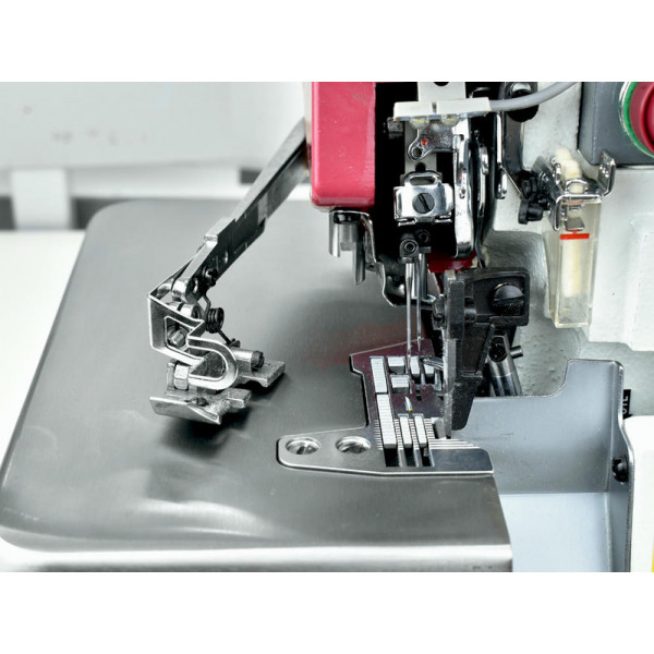 5-ти ниточный оверлок со встроенным мотором предназначен для обметывания и одновременного стачивания цепным стежком краев деталей швейных изделий из хлопчатобумажных, шерстяных, шелковых, льняных, синтетических тканей и трикотажных полотен с одновременной обрезкой края.
