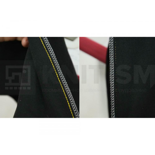 При снятии обметочной иглы, может использоваться как стачивающая машина с одновременной обрезкой края материала при производстве изделий из плащевой ткани с подкладкой из синтепона.