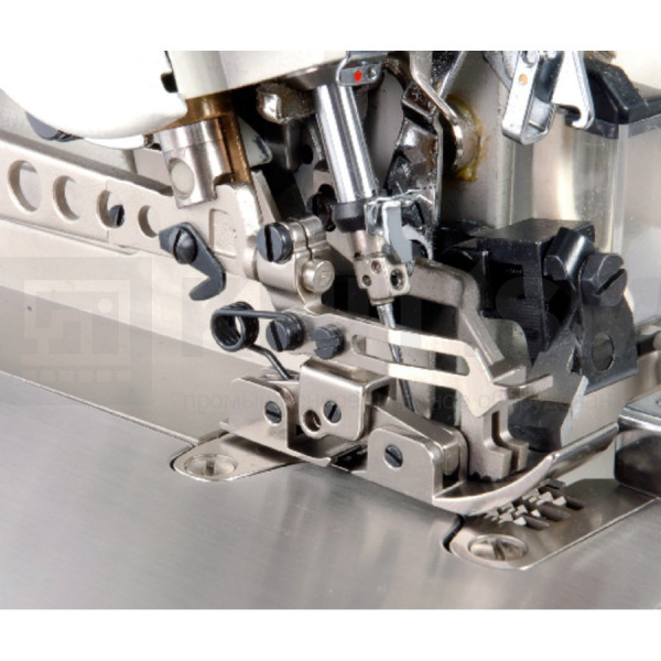 Герметичная конструкция механизма игловодителя обеспечивает его повышенную износостойкость и исключает вероятность загрязнения изделий масляными пятнами. Запатентованная конструкция механизма зубчатой рейки с двойным очистителем и защитой от утечки масла. Улучшенный механизм обрезки края материала с низкоосевым держателем ножа предотвращает скатывание материала после стачивания. Конструкция машины упрощает многие процессы настройки: регулировку высоты игловода, длины стежка, держателя нижнего петлителя и др.