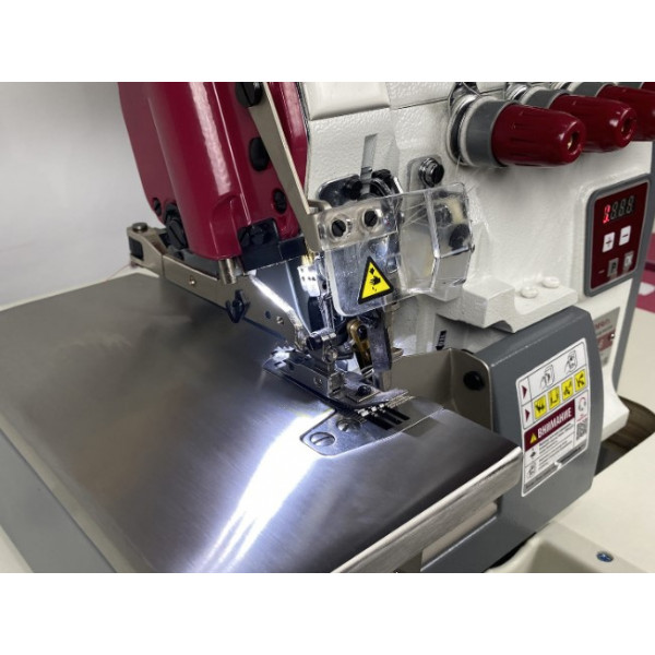 Ширина обметки: 6 мм;расстояние между иглами: 3 мм и 2 мм;Величина дифференциальной подачи: (0,7-2);Длина стежка: до 3,8 мм;Высота подъема лапки: 5,5 мм;Автоматическая смазка;.Максимальная скорость шитья до 5000 об/мин;Швейная игла: B-27 (DCx27);Светодиодная подсветка (LED-подсветка); Встроенный сервомотор с плавной регулировкой скорости;Позиционирование иглы. Основные преимущества: