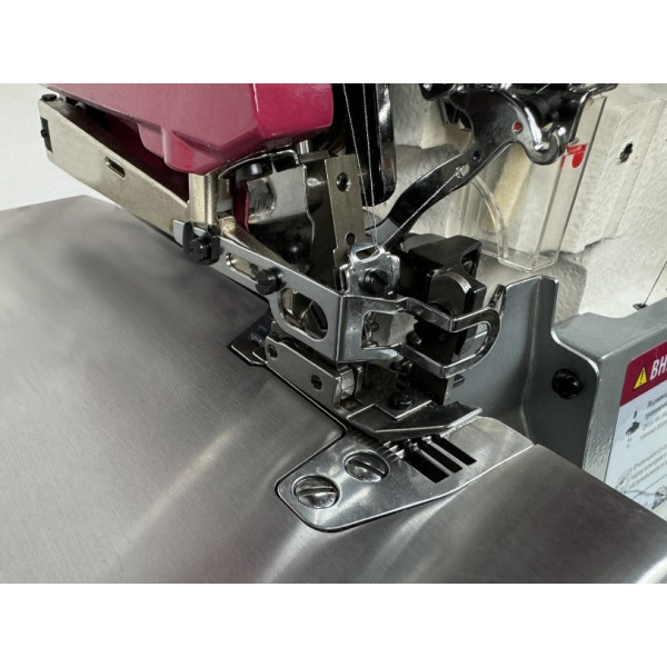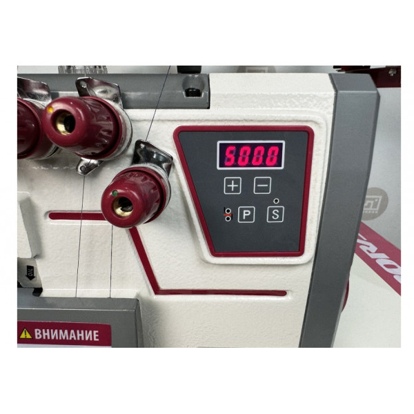 Шестиниточная трехигольная стачивающе-обметочная машина со встроенным мотором, пультом управления, регулировкой скорости, позиционированием иглы и светодиодной LED подсветкой.