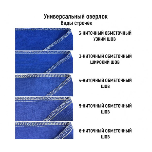 Универсальный 6-ти ниточный оверлок подойдёт для большинства задач на различных тканях и материалах, так как может еще выполнять 3-х, 4-х и 5-ти ниточные швы.