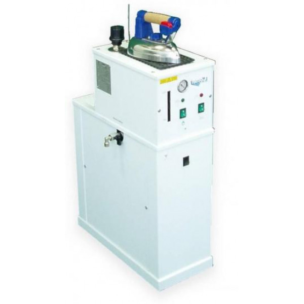 Парогенератор на колёсах марки Comel, с резервуаром и ручным питательным насосом (центробежным), мощностью 470 Вт, с бойлером из стали inox ёмкостью 5 литров. Мощность бойлера 1700 Вт, рабочее давление 2,5 Bar, вес 28 кг.