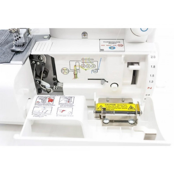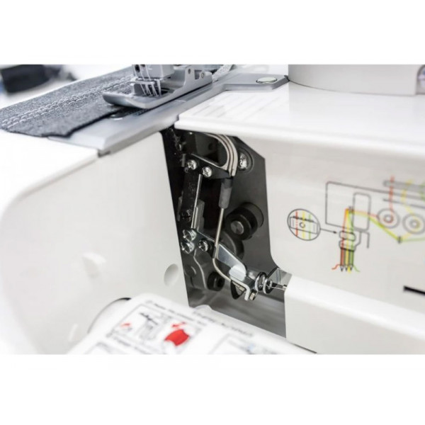 Благодаря эксклюзивной воздухоструйной системе Jet-Air Threading™, заправка петлителей стала проще простого. Одним нажатием рычажка каждая нить заправляется в петлитель воздушной струей. Теперь не нужно никаких направителей нити и борьбы с петлителями!