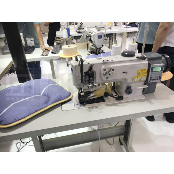 Машина для окантовки одеял с прямым приводом, позиционированием иглы и пневматическим подъемником. Комплект со столом и мотором.