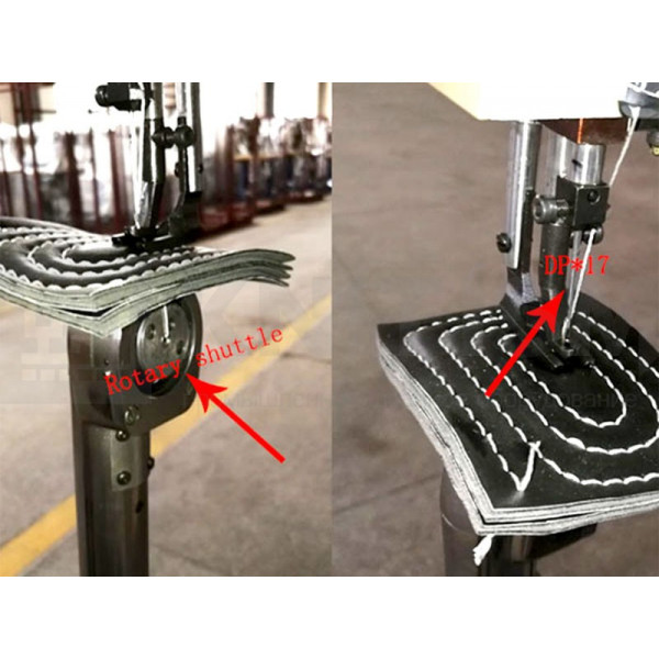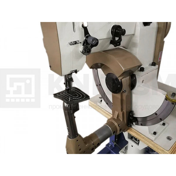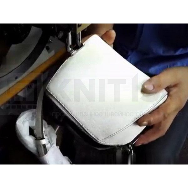 Одноигольная машина челночного стежка с поворотной колонкой и тройным продвижением. Предназначена для шитья различных участков кожаных сумкок. Каждая часть машины производится на профессиональном импортном оборудовании высокого класса CNC Haas. Для определенной операции может использоваться игла DP*17 различной толщины. Регулировка скорости позволяет работать операторам различной квалификации.