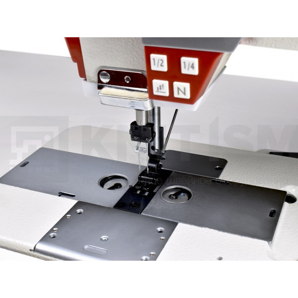 Двухигольная машина с игольным продвижением, без отключения игл, прямым приводом, электронной регулировкой длины стежка, автоматической обрезкой нити, закрепкой нити, автоматическим подъемом лапки и позиционером иглы. С возможностью выполнения дизайнерских (декоративных) строчек. Аналог Juki LH 3528.