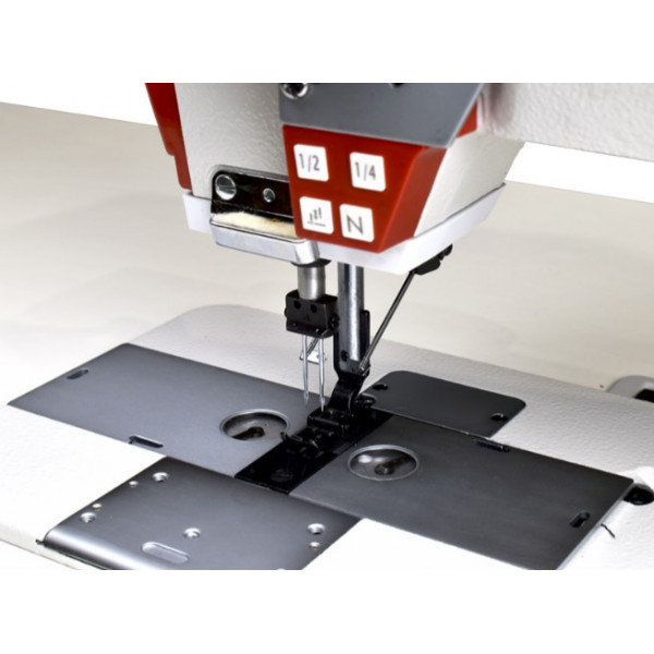 Двухигольная машина с игольным продвижением, без отключения игл, с увеличенными челноками, прямым приводом, электронной регулировкой длины стежка, автоматической обрезкой нити, закрепкой нити, автоматическим подъемом лапки и позиционером иглы. Оснащена функцией пошагового шитья. С возможностью выполнения дизайнерских (декоративных) строчек. Аналог Juki LH 4578.