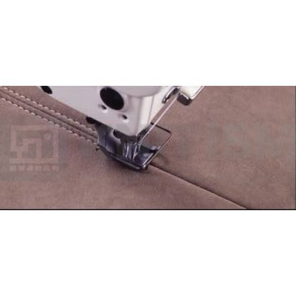Машина предназначена для шитья объемных изделий из тяжелых материалов двумя параллельными строчками, где необходима увеличенная зона шитья, в частности при настрачивании ленты или декоративной отделке в производстве мебели, а также автомобильных сидений. Автоматические функции: обрезка нитей, закрепка, подъем лапки, позиционирование иглы.