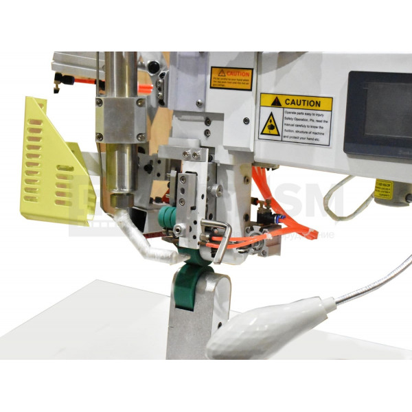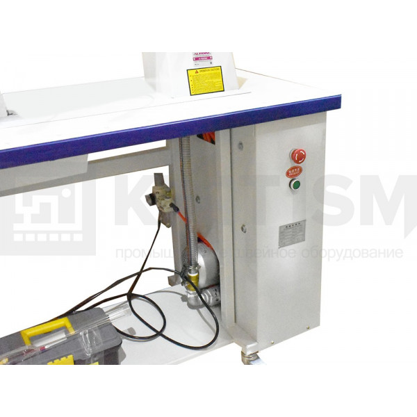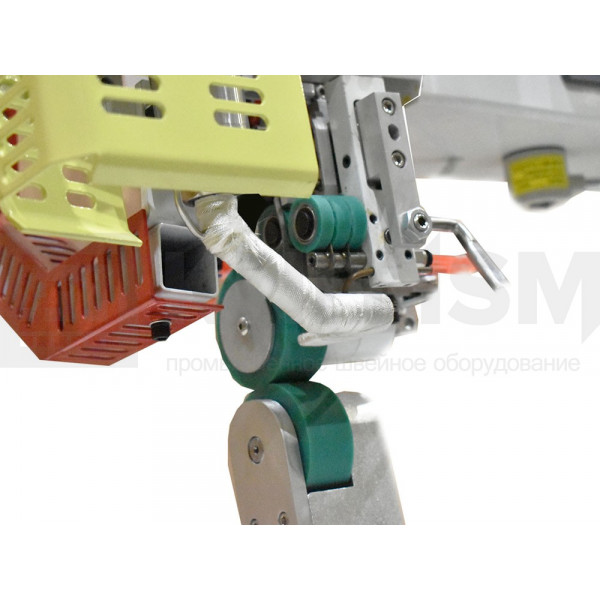 Предназначена для герметизации швов струей горячего воздуха. Отлично подходит для производства одноразовых защитных костюмов (комбинезонов), курток для сноуборда из водонепроницаемых материалов (включая нейлон и полиэтилен), тентов, дождевиков, лыжных костюмов и палаток. Машина имеет два независимых мотора с регулировкой скорости, для управления верхним и нижним роликом. Установлен дополнительный электромотор нагнетающий воздух в зону его нагрева, обеспечивая меньшее потребление сжатого воздуха.
