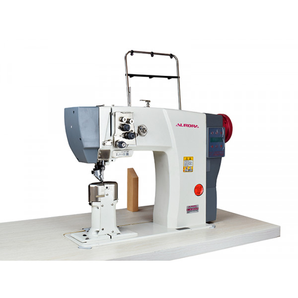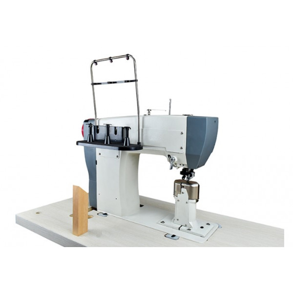 Универсальная одноигольная/двухигольная колонковая машина челночного стежка с роликовым продвижением с прямым приводом. Машина предназначена для шитья тяжелых материалов и кожи при изготовлении сумок, обуви и кожгалантереи. Система подачи ткани состоит из прижимного верхнего ролика и гребенки продвижения роликового типа.
