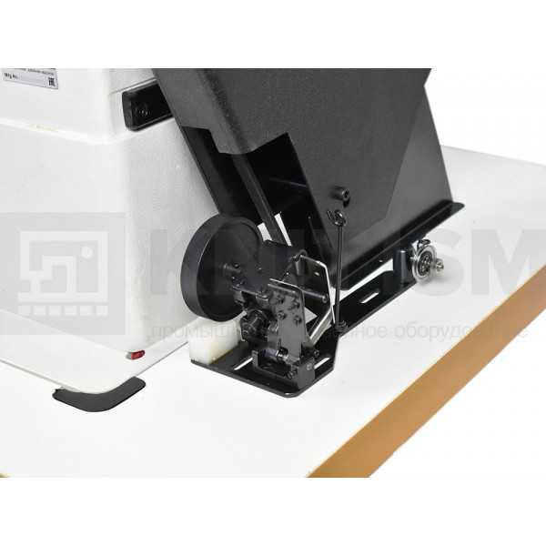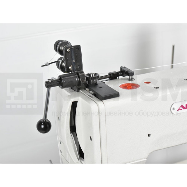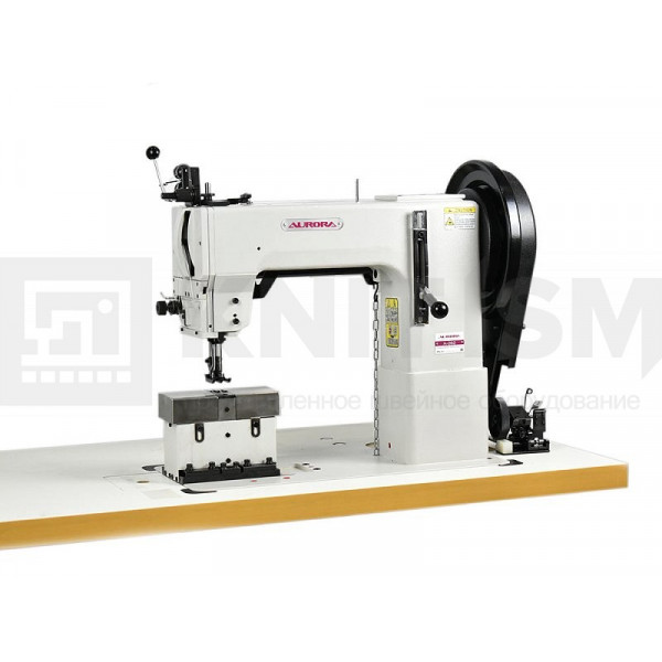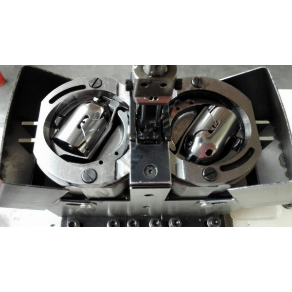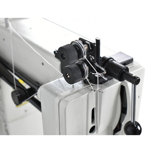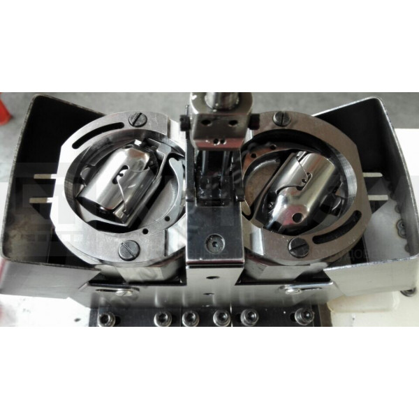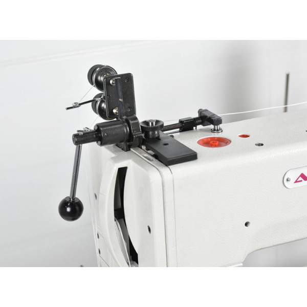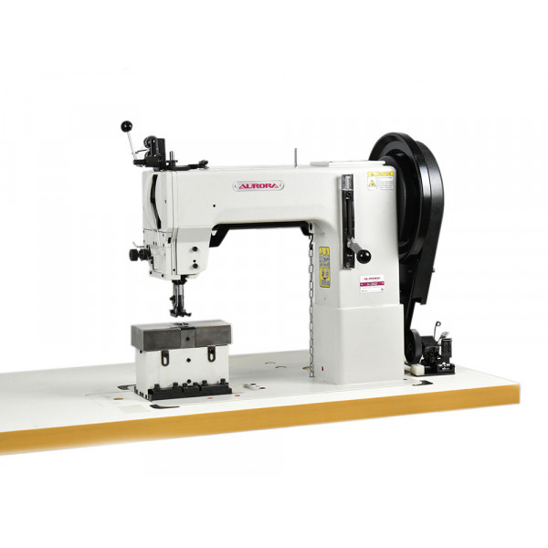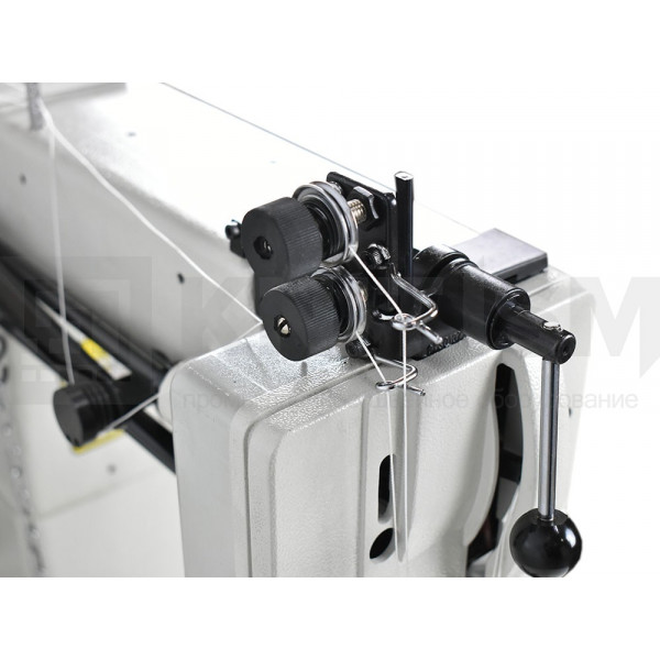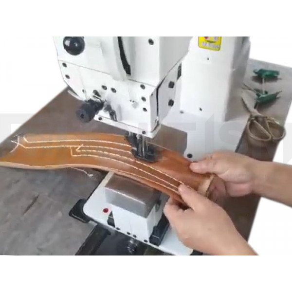 Колонковая двухигольная машина челночного стежка с тройным (унисонным) продвижением и увеличенными челноками для сверхтяжелых материалов. Предназначена для шитья строп, парашютов, ремней безопасности, чехлов для мебели, тентов, палаток, сумок и т.п. Для специальных отделочных строчек на таких изделиях, как обувь, на технических изделиях, обивках, где используются толстые, крученые нити.