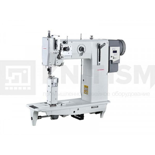 Одноигольная колонковая машина челночного стежка с игольным продвижением выполняет красивые декоративные строчки на выгнутых участках и предназначена для шитья средних и тяжелых материалов и кожи при изготовлении мягкой мебели, головных уборов, сумок для багажа. Прямой привод.