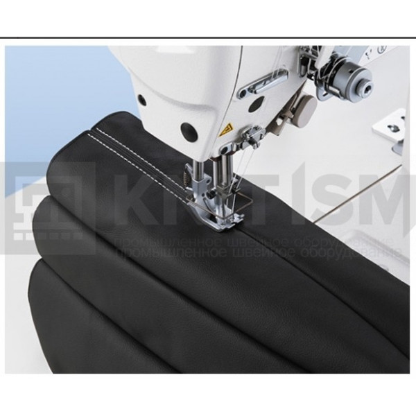 Компактная колонковая машина с двухигольной системой для деликатного декоративного прошива. Тройное продвижение и увеличенный челнок обеспечивают качественную строчку на материалах средней плотности. Используется при изготовлении детализированных элементов автомобильных сидений, мягкой мебели и спортивных товаров с акцентом на сложные криволинейные формы.