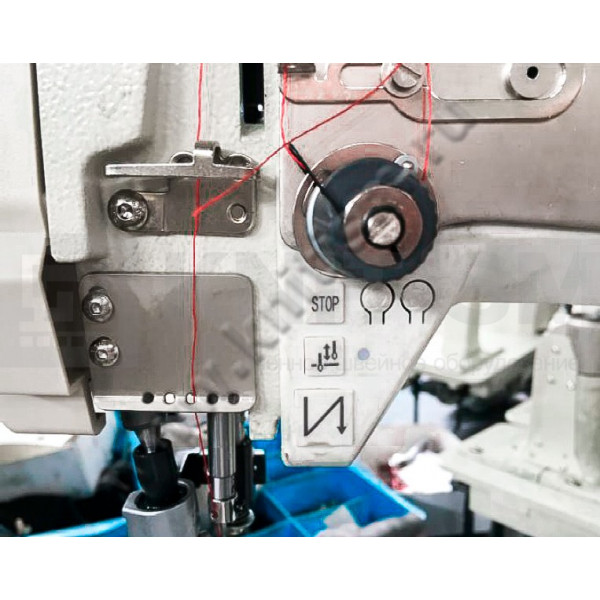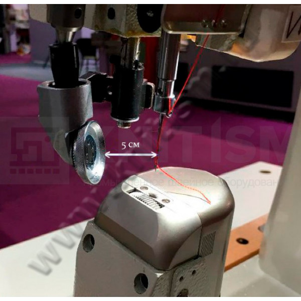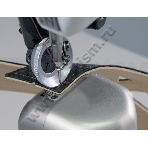 Одноигольная колонковая машина челночного стежка с унисонной подачей верхнего и нижнего ролика и иглы и прямым приводом, с автоматической обрезкой нити, закрепкой нити и автоматическим подъемом лапки, позиционером иглы и возможностью программирования количества стежков в строчке. Машина предназначена для шитья тяжелых материалов и кожи при изготовлении сумок, обуви, кожгалантереи. Система подачи ткани состоит из прижимного ролика, гребенки продвижения роликового типа и отклоняющегося игловодителя.