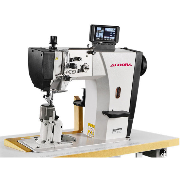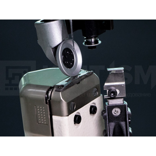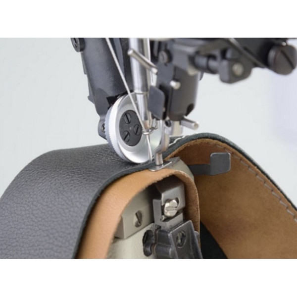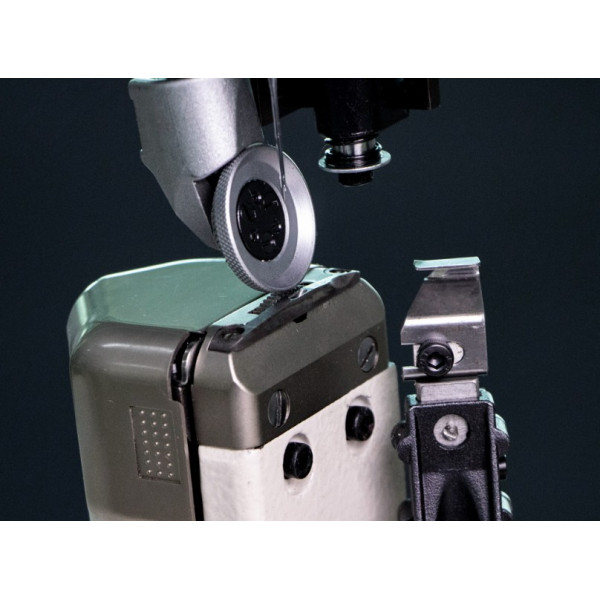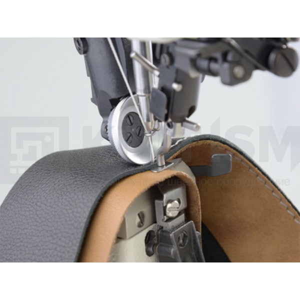 Одноигольная машина челночного стежка с тройным (унисонным) продвижением: верхнего и нижнего ролика и иглы, обрезкой края материала, автоматической обрезкой нити, закрепкой и подъемом лапки для пошива высококачественных изделий из кожи: сумок, кошельков, портмоне, обуви и т.д.
