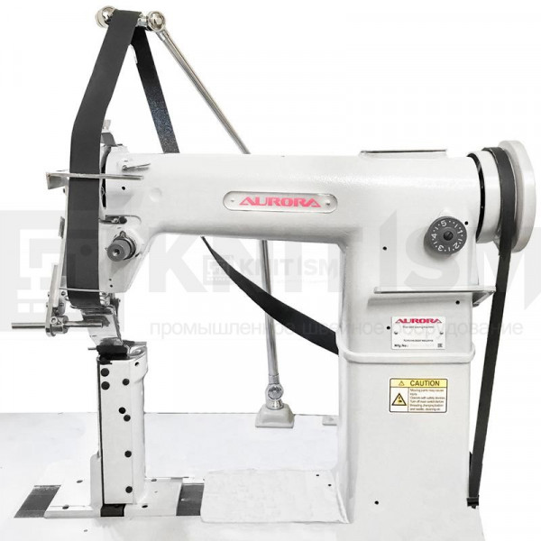 Одноигольная швейная машина с колонковой платформой и устройством подачи тесьмы. Предназначена для пошива головных уборов и париков из средних материалов и легкой кожи.