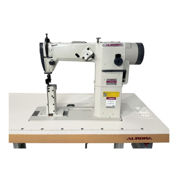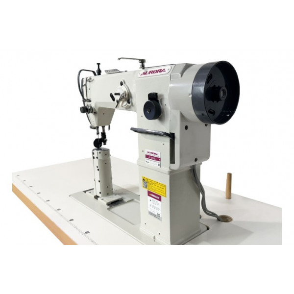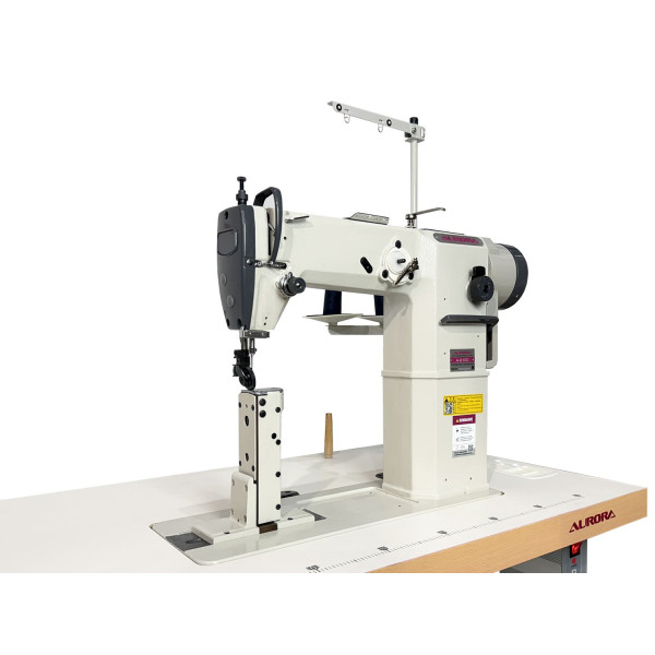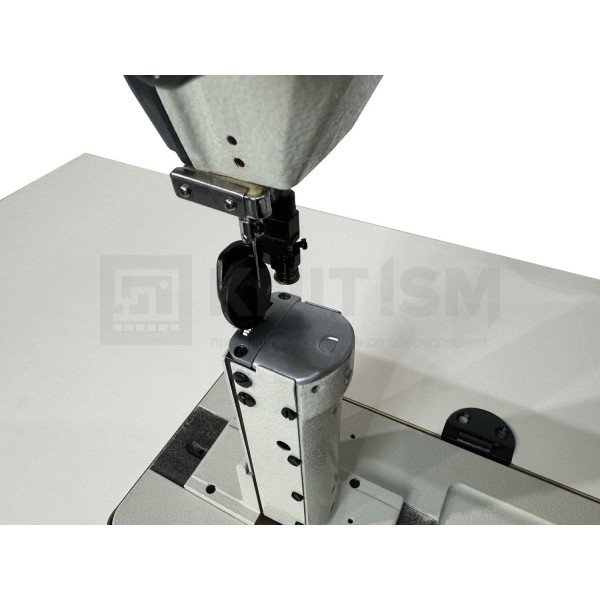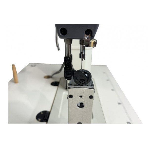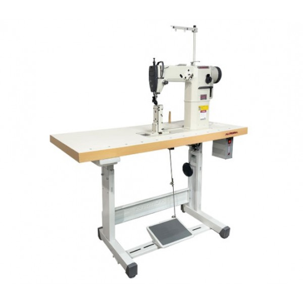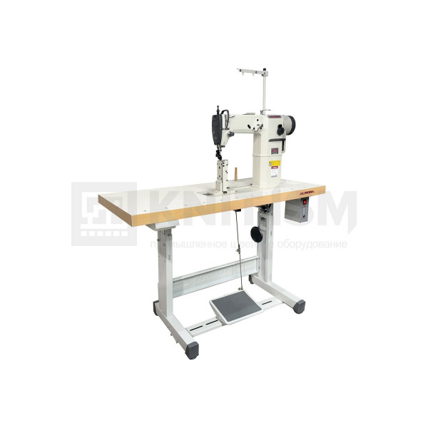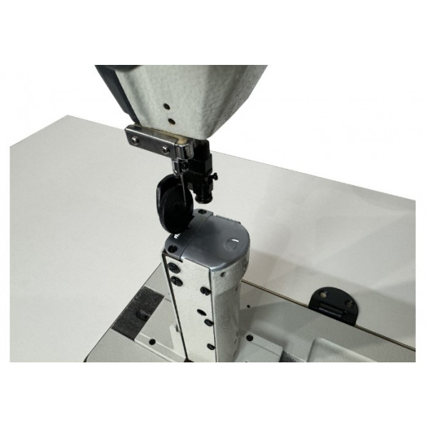 Одноигольная колонковая швейная машина челночного стежка с нижним продвижением материала и прямым приводом.
