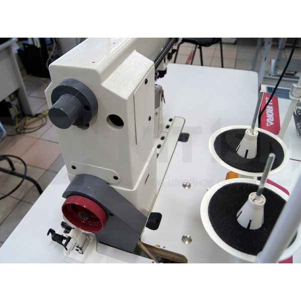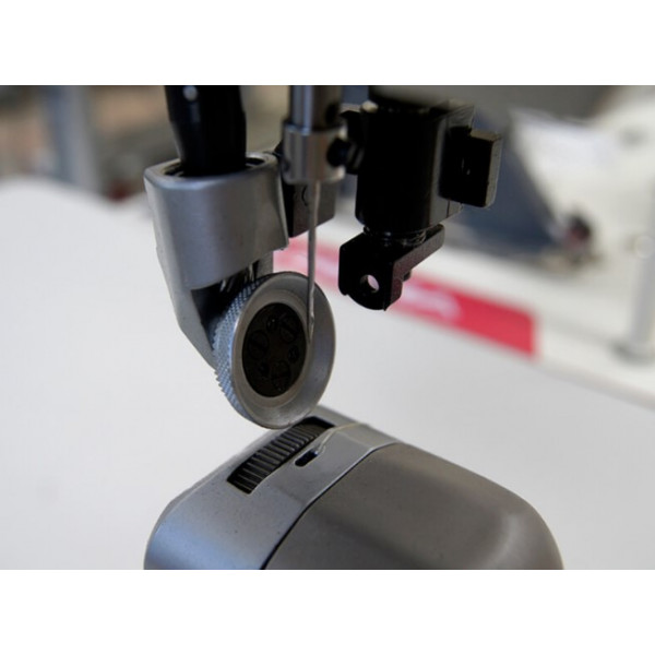 Система унисонной подачи с идеальной синхронизацией обеспечивает стабильную подачу материала. Увеличенная высота подъема лапки позволяет работнику легко помещать и извлекать обрабатываемые изделия большой толщины при шитье. Прижимной ролик обеспечивает маневренность при пошиве изделий с закругляющимися строчками.