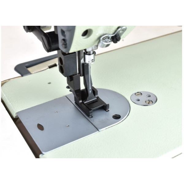 Машина предназначена для сшивания труднопродвигаемых изделий из средних и тяжелых материалов при изделий из кожи, обуви, в том числе сапогов, сумок, диванов, брезентовых пальто и палаток, производстве водолазных костюмов и др. Хорошо подходит для обработки эластичных и растягивающихся материалов. Движения шагающей лапки синхронизированы с продвижением зубчатой рейкой, обеспечивая ровную и высококачественную строчку.