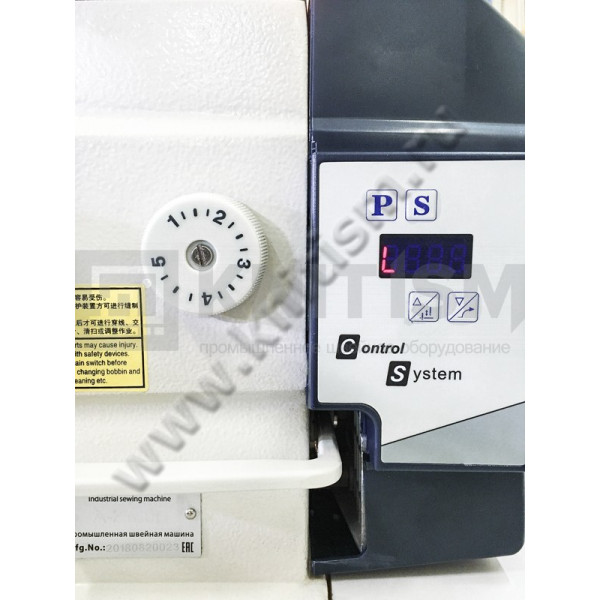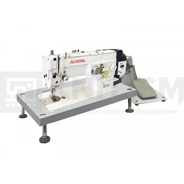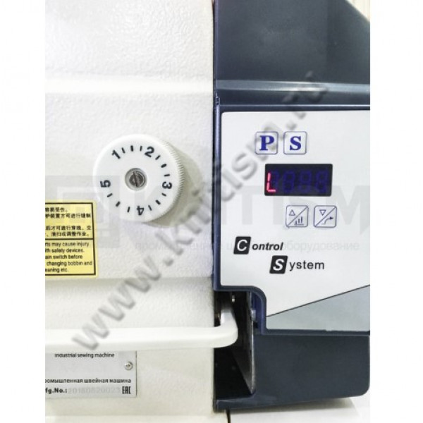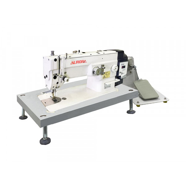 Настольная машина челночного стежка строчки зигзаг (двухукольный зигзаг) со встроенным сервоприводом, увеличенным челноком, переносным столиком и педалью привода.