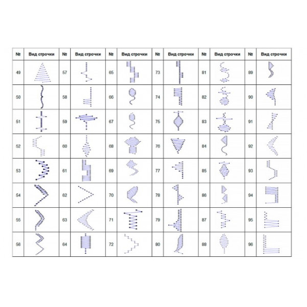 Машина предназначена для обработки изделий 2-х, 3-х, 4-х укольной зигзагообразной строчкой и декоративными строчками. В память машины заложено 65 программ шитья. Предназначен для обработки лёгких и средних материалов.