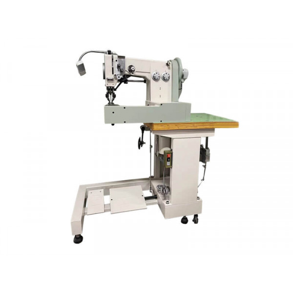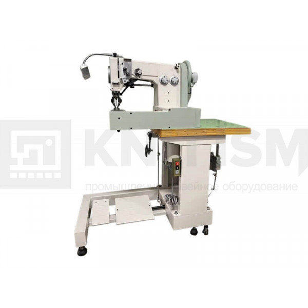 Двухигольная мокасиновая машина с П-образной платформой для выполнения отделочного шва на верхней заготовке обуви. Используется для декорирования обуви, мебельных чехлов и кожаных аксессуаров.