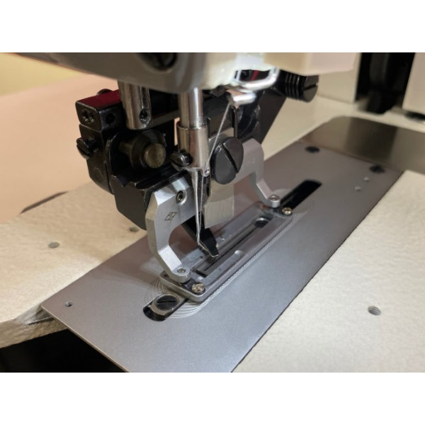 Машина оснащена двумя шаговыми моторами отвечающими за автоматический подъем лапки и функцию мультинож, которая позволяет прорубать петлю длиной до 37 мм двойным резом ножа, при этом замена ножа не требуется.