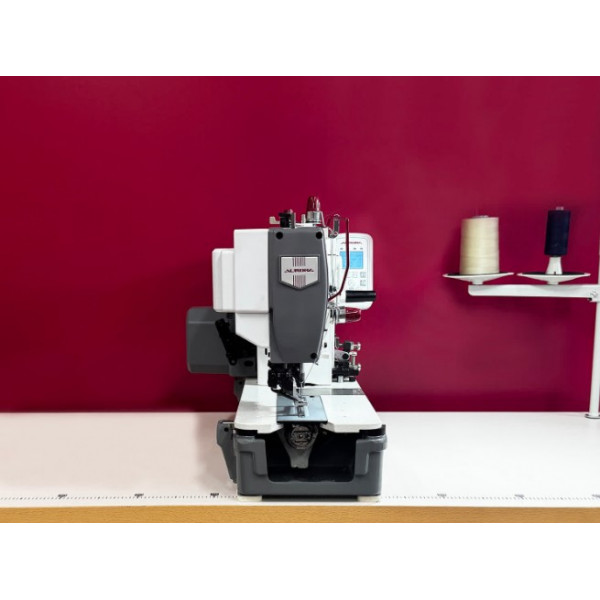Петельная машина челночного стежка с функцией мультинож, автоматическим подъемом лапки, автоматической обрезкой нити, прямым приводом и встроенным блоком управления.