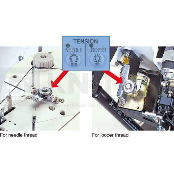 Машина с электронным управлением позволяет выбирать и устанавливать различные типы глазка. Благодаря новой технологии, имеющей название «активное натяжение» (электронный механизм натяжения нити), машина способна с легкостью воспроизводить одни и те же условия при шитье.