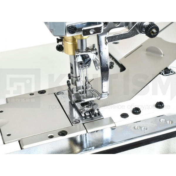 Плоскошовная машина повышенной надежности. Возможность работать с 2 и 3-мя иглами / 4 и 5-ю нитями Удобная и простая регулировка длины стежка, отсутствие шума и вибрации даже на самой высокой скорости. Оснащена дифференциальным механизмом подачи материала с возможностью тонкой регулировки хода реек. Централизованная автоматическая система смазки.